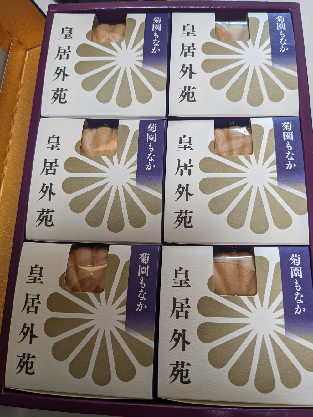 「皇居外苑 菊園もなか」またも、東京のお土産でいただきました。いつもありがとうございます。
