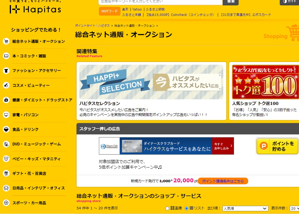 いつものショッピングを、ハピタス経由で買い物するだけで、ポイントが貯まって、現金やギフトに交換できる高還元率ポイントサイトです。