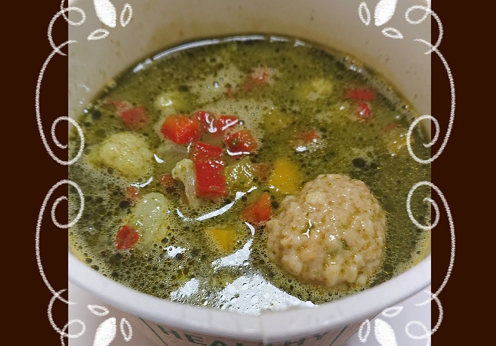次にこちらはスープになります。パッケージがとてもかわいいです。国産バジルとほうれん草のグリーンスープです。もちろん冷凍なので、レンジで5分ほどチンしました。